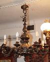 Leírás: nagy mérető, empire tüzaranyozott réz csillár 15+1 karos, egykor gázos, átvezetékelve, 170cm. magas, átmérő 110cm.